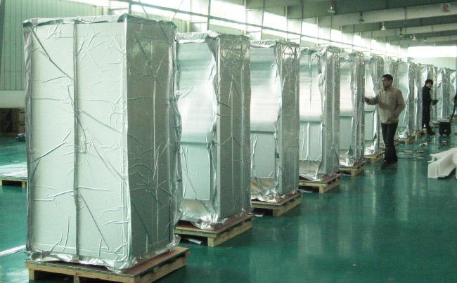 材料為四層結構PET/AL/NY/PE復合而成,用于對防潮密封效果有高要求的產品包裝,如出口需海運的大型設備。